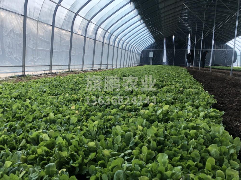 2、拱架上覆盖遮阳网并卷起棚膜通风,种植耐热菠菜、香菜。