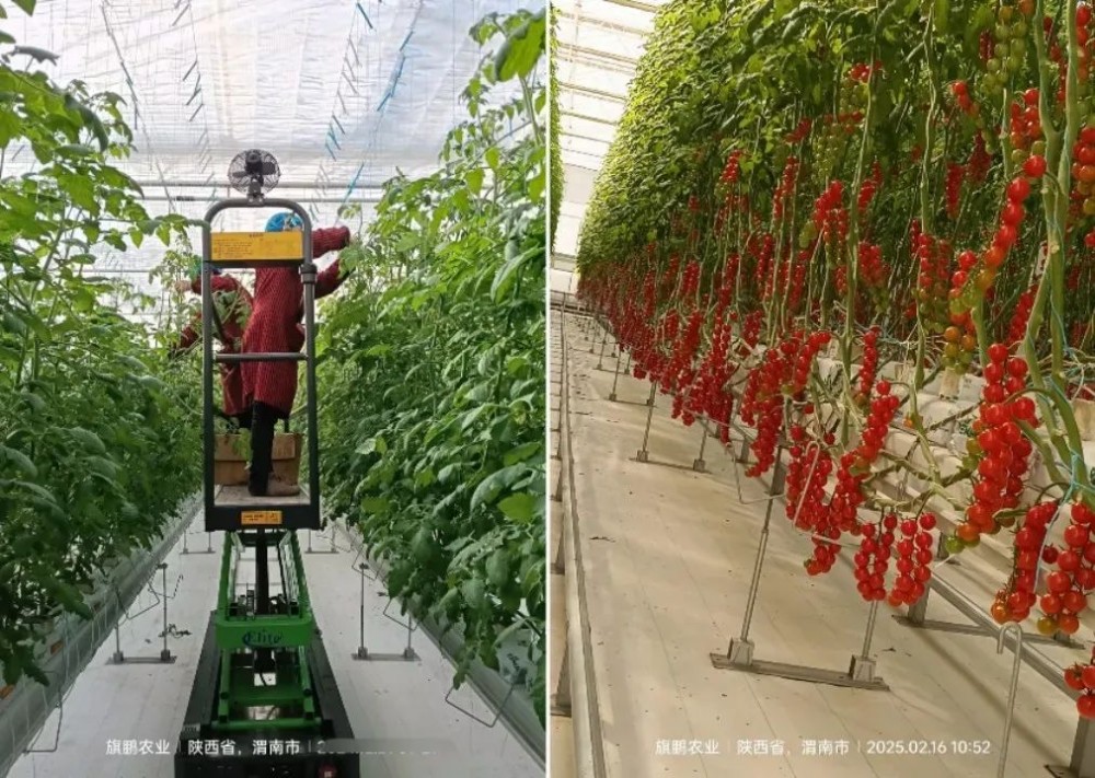 无土栽培具有节肥节水、省工省力、抗病抗虫、高产高效和环保等特点,配备水肥一体化以及自动环控系统等先进设备,节省大量劳动力,种植区域干净整洁机械化程度高,行距大、产量高,硕果累累的场景极具震撼力。